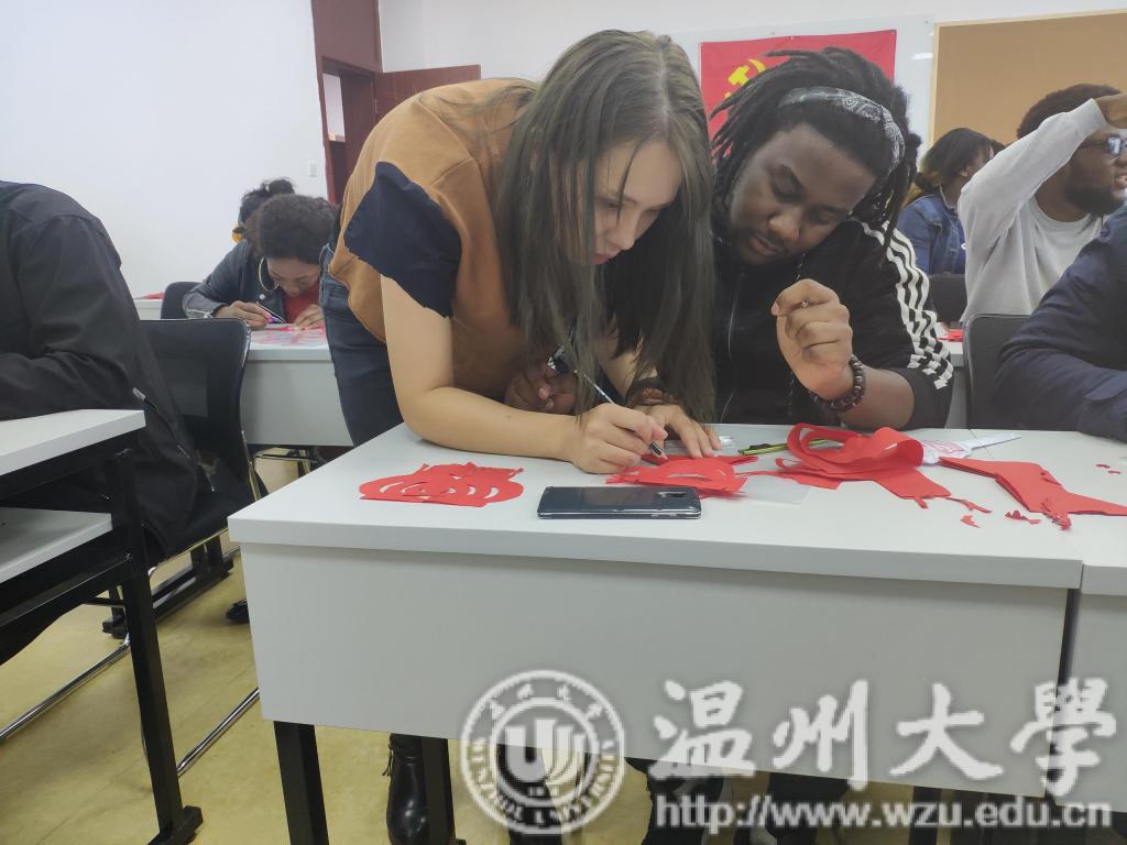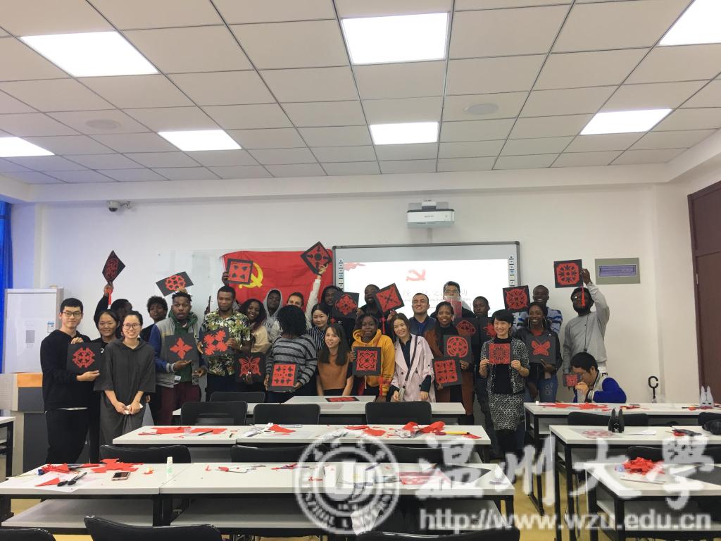 为了传承并发扬中国传统文化,丰富留学生校园文化生活,2018年10月22日下午,皇冠博彩-博彩导航 结合自身特色,与温州大学商学院合作,一同在北校国际楼开展了以中外剪纸文化交流为主题的活动。出席本次活动的领导有皇冠博彩 党总支副书记杨振海、商学院党总支副书记刘开练、商学院国际部主任王洪斌以及商学院教师吴海蓉。 活动的开始,商学院的吴老师首先向留学生们介绍了本次活动的目的与意义,介绍前来开展活动的美院研究生代表们,同时也对在场的留学生们的积极性表示了充分肯定,尤其是第一次参与学院举办的课外活动的18级新生。老师提到,希望同学们能够好好表现,争取在此次剪纸活动中有所收获,了解剪纸艺术。 此次,带领留学生们剪纸活动由皇冠博彩 研究生党支部主教。美院研究生代表徐苗苗为大家讲解了中华剪纸文化的历史内涵,介绍了剪纸中“福”和“寿”的具体意义,以及藏在火红的剪纸图画背后的中国老百姓们对生活的美好向往。生动的解说让留学生们沉迷其中,同时留学生们也忍不住赞叹中国传统文化的博大精深。接下来是动手环节,留学生们在美院研究生的带领和指导下,按剪纸的基础步骤一步步进行,每个人还积极思考,发散思维,加上了自己对剪纸的理解,进行了图案的设计与创作。留学生们完成了一幅幅形象生动的剪纸作品,同时也提高了动手能力,初步学习了中国传统艺术之剪纸。 活动的最后,美院研究生代表选出了留学生剪纸作品的一二三等奖,美院的研究生和留学生一同在领导老师带领下,参观商学院一楼新落成的留学生活动中心,颁发奖品并合影留念。留学生们脸上洋溢的笑容,展示着他们对中国文化体验交流活动的浓厚兴趣与快乐。希望美院的研究生和商学院多多交流,希望中华传统文化能一直传承下去。