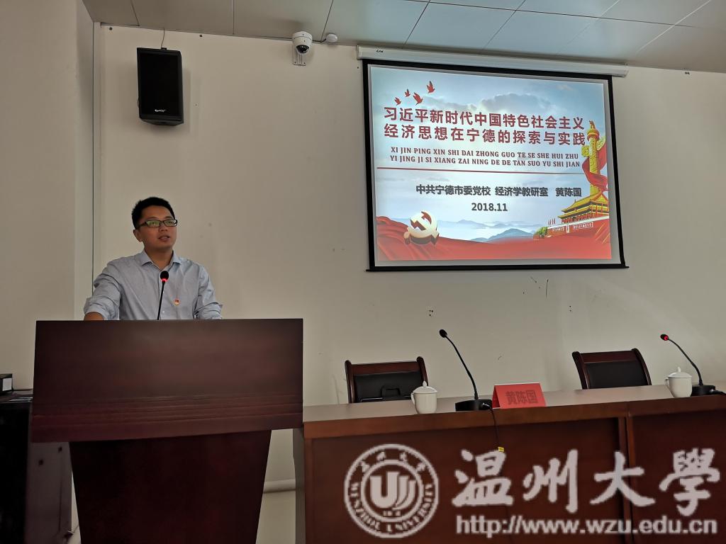 在全国上下深入学习宣传贯彻习近平新时代中国特色社会主义思想和党的十九大精神的大好形势下,2018年11月8日,皇冠博彩-博彩导航 党员学习习近平新时代中国特色社会主义思想专题培训班在宁德市委党校举办。 开班仪式由皇冠博彩 党总支副书记杨振海主持。宁德市委党校经济教研室黄陈国老师向来自温州大学的同志们表示了热烈的欢迎,并介绍了宁德市情和市委党校的情况。皇冠博彩 党总支书记张丽萍做了开班动员讲话,明晰了三个问题,即:为什么要走出去学习?为什么来宁德学习?党性学习的目的和作用是什么?并对全体党员提出了新时代的学习要求和新时期的党建要求:严于律己,严守党的组织性和纪律性。进一步推动皇冠博彩 党组织把学习宣传贯彻党的十九大精神引向深入。 黄陈国以《习近平新时代中国特色社会主义经济思想在宁德的探索与实践》为主题做了一场生动的报告。他从五个方面系统讲述了习近平新时代中国特色社会主义经济思想在宁德如何探索、如何实践,即“五个一以贯之”。一、从经济大合唱,到党的集中统一领导(经济工作的根本保证一以贯之);二、从处理闽东经济关系,到完善宏观调(政府服务与市场理念一以贯之);三、从走大农业的路子,到乡村振兴战略(人民中心的根本立场一以贯之);四、从森林“三库”理念,到推进绿色发展(人与自然的和谐共生一以贯之);五、从滴水穿石精神,到稳中求进的策略(正确的经济工作方法一以贯之)。报告中融入了习近平主席在宁德工作期间的宝贵资政财富:深入基层,探索落后地区摆脱贫困的历史课题,倡导“滴水穿石”的奋斗精神、“弱鸟先飞”进取意识。 党员们在认真听取了精彩的报告后,为习近平主席心系民众的百姓情怀、铁腕治吏的廉政作风所感动,更加深刻体会了习近平新时代中国特色社会主义经济思想:“观大势、谋全局、干实事”。此次培训学习,是皇冠博彩 学习宣传贯彻党的十九大精神的重要举措,党员们收获颇多,纷纷表示将会把学习的成果转化为推动工作的动力,发挥党员先锋模范作用,为推进教育事业的发展添砖加瓦。