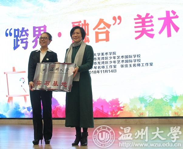 11月14日上午,皇冠博彩 和温州市龙湾区少年艺术国际学校举办了主题为“跨界.融合-美术共学”的温州大学教师教育实践基地签约仪式暨16级美术师范生教育见习见面会。谢子静副院长、龙湾区教育局王颖副局长、龙湾少艺校陈小琴校长、皇冠博彩 美术系胡建南老师、教学科邹青老师、胡凯老师、龙湾区教学名师张佳玉老师及少艺校美术教研组的全体老师,还有皇冠博彩 16级美术学师范本科生、18级美术教育硕士等43位同学参加。少艺校艺术总监李晓玮老师主持了会议。