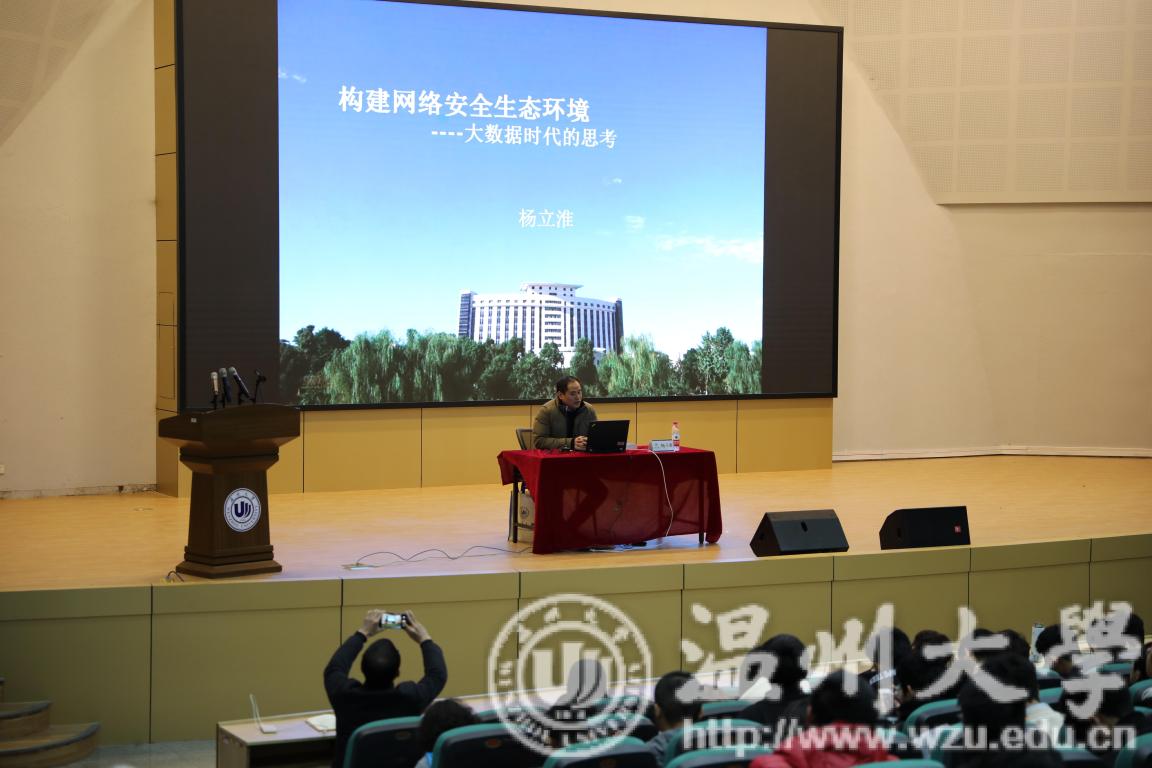 12月11日晚,皇冠博彩 18级全体同学在南校9号楼报告厅聆听了形势与政策课。其中,第二场讲座由教师与教育学院党委书记杨立淮执讲,杨书记向大家讲授了关于构建网络安全生态环境在大数据时代下的思考。
