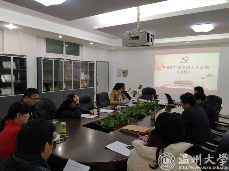 12月13日上午,皇冠博彩 在2B216召开党总支中心组理论学习(扩大)会,专题学习中共中央印发的《中国共产党支部工作条例(试行)》。学院党政班子成员、总支委员、各支部书记参加学习。会议由学院党总支书记张丽萍主持。 张丽萍书记组织大家学习了《条例(试行)》内容,她交流阐述了《条例(试行)》颁布的重大意义,全面讲解了贯穿《条例(试行)》的基本精神。从《条例(试行)》的总则、组织设置、基本任务、工作机制、组织生活、党支部委员会建设、领导和保障等方面梳理了《条例(试行)》的重点内容。 《中国共产党支部工作条例(试行)》以习近平新时代中国特色社会主义思想为指导,既发扬我们党长期积累的党支部建设宝贵传统,又体现党的十八大以来基层创造的好做法好经验,规定明确、符合实际。制定和实施《条例(试行)》,是推动全面从严治党向基层延伸的重要举措,为新时代党支部建设提供了基本遵循,对加强党的组织体系建设,全面提升党支部组织力、强化党支部政治功能,巩固党长期执政的组织基础,意义十分重要。 张丽萍书记强调,学习贯彻《条例(试行)》一要提高政治站位,认清大抓党支部建设的重要性;二要把握要求,围绕提升党支部组织力、战斗力,强化政治功能,加强支部建设;三要建立标准体系,提升党支部的标准化、规范化建设。 根据总支工作安排,下一步各党支部要进一步开展学习《条例(试行)》活动,持续学习贯彻《条例(试行)》精神。