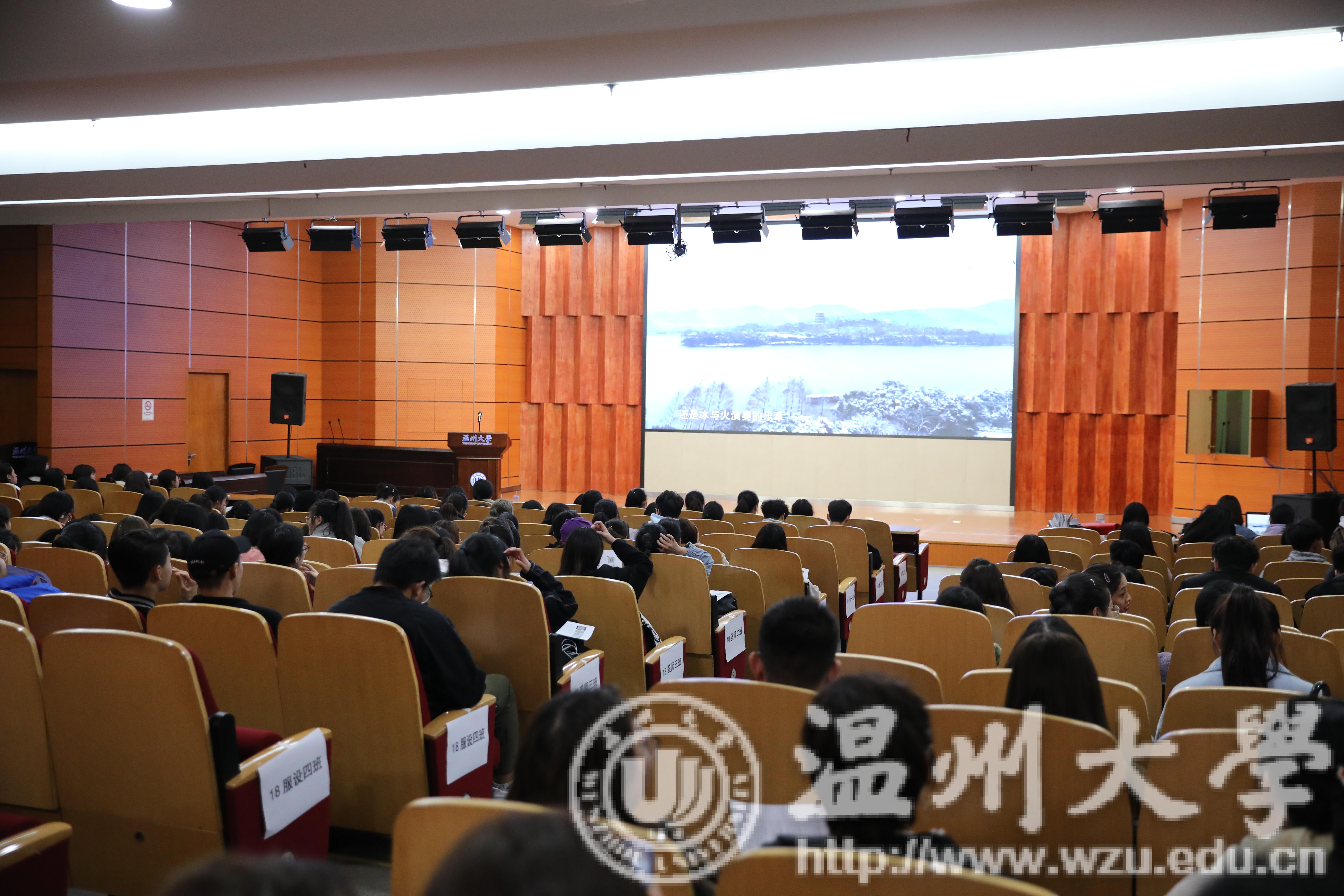 3月17日晚上,皇冠博彩 2018-2019学年第二学期第一次形势与政策课于雁山厅开讲,美院全体18级学生参加学习。