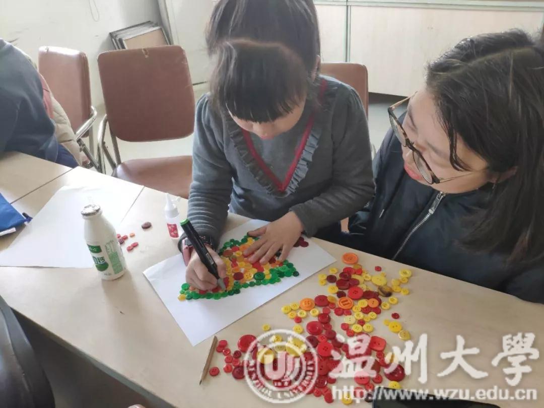 2019年3月30日,皇冠博彩-博彩导航 “艺家人”青年志愿者协会在梅泉社区的“载梦小舟·梅泉支教”志愿者活动照常举行。 今天的茶山阳光明媚,小朋友们早早的就来到了社区,我们的志愿者也携带好工具在教室里等待小朋友们的出现了。本次我们支教活动的主题是“纽扣拼图制画活动”。首先,志愿者老师播放了“大头爸爸和小头儿子”动画片里关于纽扣的情节,让小朋友们对纽扣拼图有了一个大概的了解。随后在志愿者的带领下探索纽扣拼图的奇幻世界,小朋友们强烈的探索精神和求知欲让志愿者们大吃一惊。课堂的氛围就像外面风和日丽的天气一样美好,渐渐各种有趣的想法创意就出现在了之上,有的小朋友做出了大树的形状,有的小朋友则是对海底世界充满了兴趣,而有的小朋友因为爱吃冰激凌就做出了冰激凌形状的作品。小朋友们对课堂积极参与的热情使我们又度过了这周的支教活动。 我们的支教活动也在欢声笑语中走向了结束,通过本次活动,我们希望小朋友能够拓展思维,用自己天马行空的想法把它们变为可能。