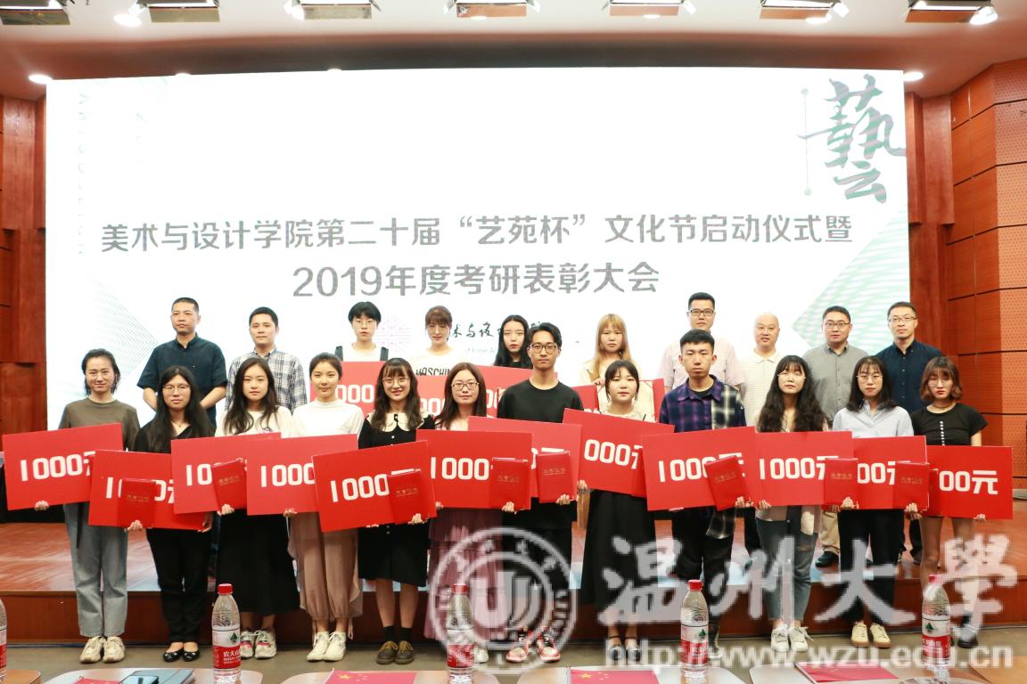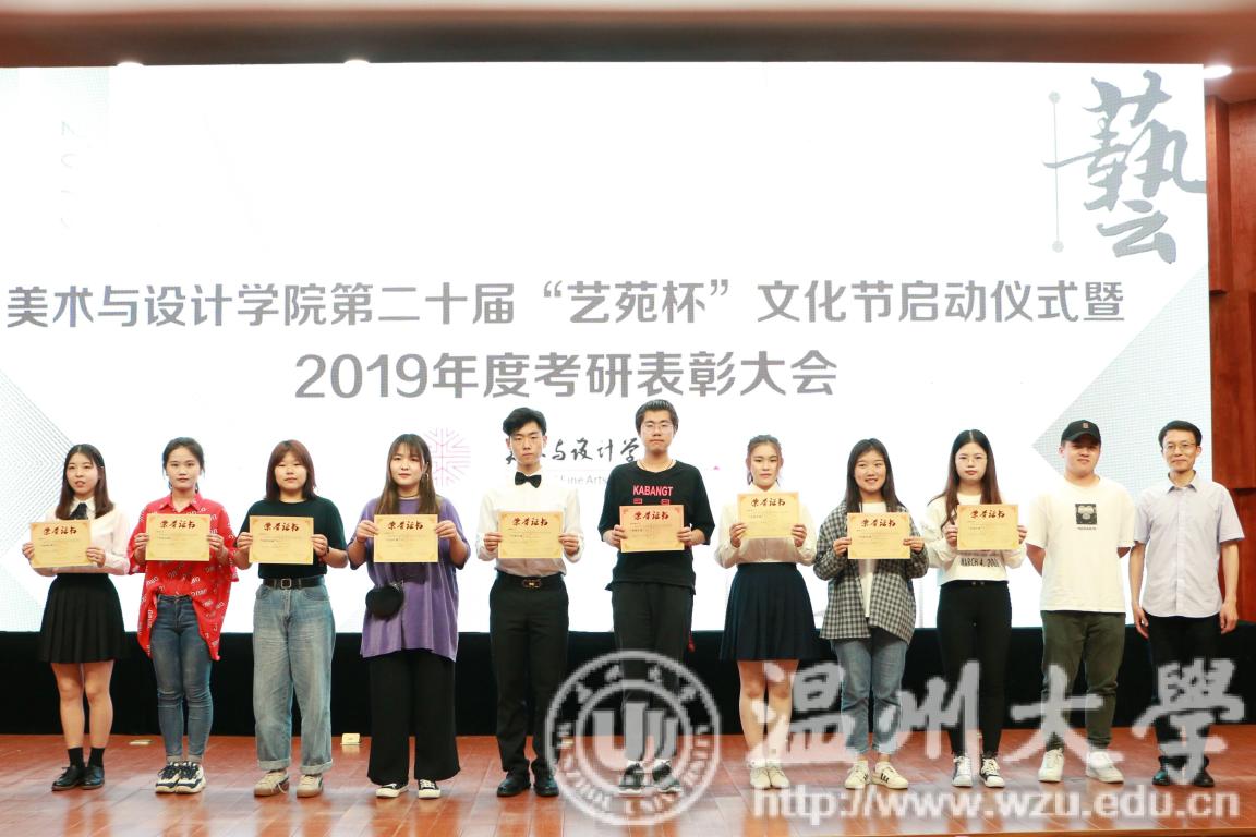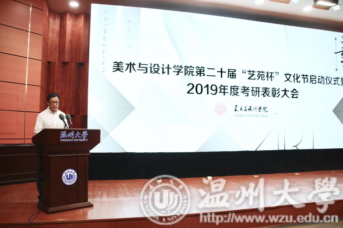 2019年4月24日下午,皇冠博彩 第二十届艺苑杯文化节启动仪式暨2019年度考研表彰大会在岩松堂雁山厅顺利举行。莅临本次启动仪式的领导有校党委宣传部副部长冯方盛,校教务处副处长胡瑜,校学工部副部长、学生处副处长高红星,校就业处副处长应中,校团委副书记魏一,超豪学区党委副书记李祖祥,皇冠博彩 院长李运河,党总支书记张丽萍,副院长张晓剑。参加本次活动的还有皇冠博彩 17、18级同学。启动仪式由美院党总支副书记杨振海主持。