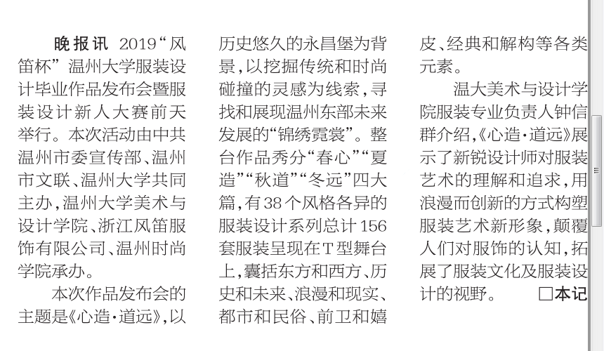 看温州:《心造•道远》 一展“锦绣霓裳”
