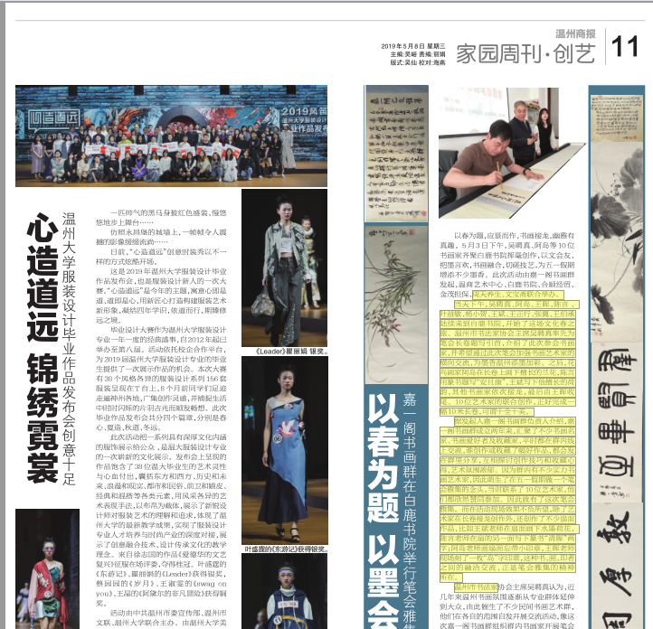 活动由中共温州市委宣传部、温州市文联、温州大学联合主办。由皇冠博彩-博彩导航 、浙江风笛服饰有限公司、温州时尚学院合作承办。商报记者郑丽娟