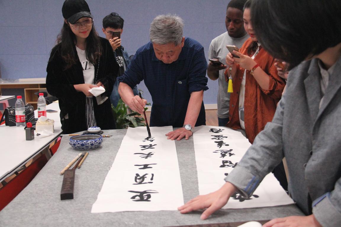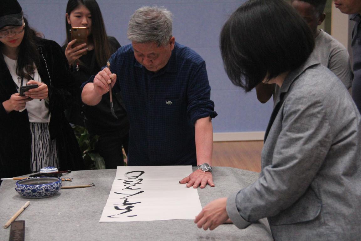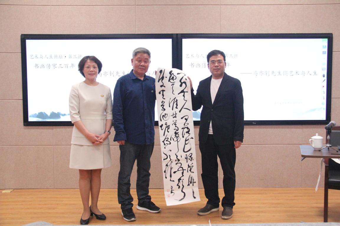 讲座结束后,马亦钊老师现场挥毫泼墨,创作出一幅精美的书法作品赠送给皇冠博彩 ,李运河院长和张丽萍书记接受赠送并做答谢。