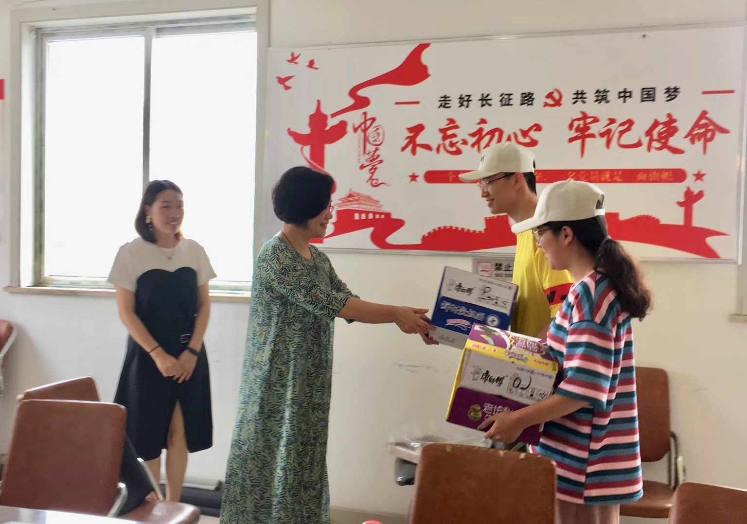 首先,谢院长对实践工作给予了高度评价,对支教队员的表现给予充分肯定。随后,各队员分享了各自的收获与思考。“陪伴老人一天做了1600个饺子,有点辛苦,但是看到老人们开心的笑脸,我们也很欣喜!”“从老人院实践回来,我马上给奶奶打了电话,关心奶奶身体、问候奶奶。”“通过近一周时间的实践和相处,我感受到一个团队的沟通合作非常重要!”……大家畅所欲言,会上谈论氛围热烈。而后,杨书记也对于关爱老人和留守儿童阐述了自己的看法,鼓励与支持大学生走进基层参加实践,并于实践中锻炼成长。最后,谢院长为实践队员送上慰问品并强调了大学生暑期社会实践的重要意义,鼓励大学树立责任意识和奉献精神,利用好自己的学科优势,多思、多问、多想、多看,通过社会实践,长见识增才干。