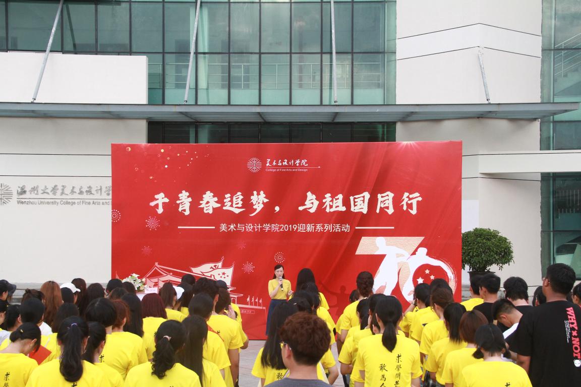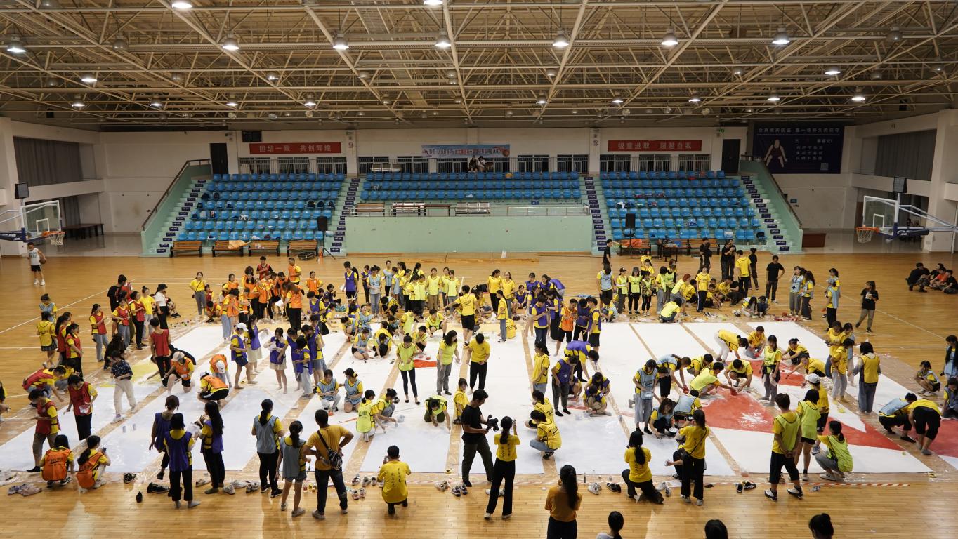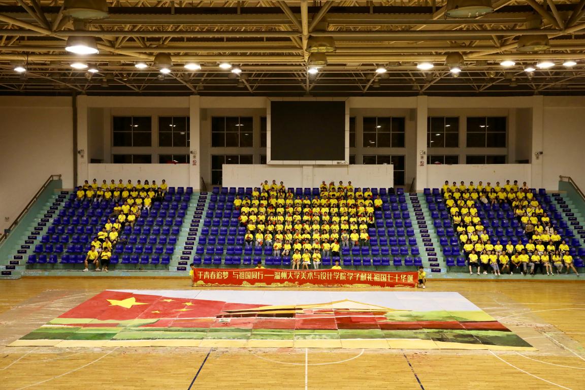气势磅礴的口号,手中挥舞的五星红旗,用心设计的定向任务卡,16米长的巨幅画作……9月15日下午,皇冠博彩-博彩导航 举办“于青春追梦,与祖国同行”迎新生、庆国庆活动。活动分为定向素拓和巨画绘制两部分进行,旨在祖国70华诞来临之际,携手全体新生,向新中国成立70周年献礼。 活动开幕副书记杨丽君致辞 266名美院新生参加,他们统一身着黄色校服,朝气蓬勃活力无限,在温州大学“飞行部落”培训师的指导带动下,团结努力,最终完成“能量传递”、“团队悦动”、“一圈到底”三关定向挑战。通过活动,不仅培养了新生团队精神,增进了健康体魄,更通过精心设计的定向运动任务卡展现了新中国变迁,传递了浓浓爱国情与民族自豪感。 266名新生共绘国庆巨画 全体新生摆出“70”字样献礼祖国70华诞 随后,266名新生齐聚温大篮球馆,在温州大学这个崭新的起跑线上,他们用手中的颜料与画笔,用艺术专特长与热情,共同绘制10*16m国庆主题巨画《我爱祖国》,画出了浓墨重彩的一笔。最后,在266人、花费3小时共同完成的画作旁,全体新生摆出“70”字样,齐声喊出“祝伟大祖国繁荣昌盛”,献礼祖国70华诞,展现了温大青年学子的爱国情怀和使命担当。