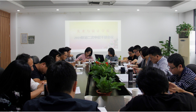 10月16日,2019秋皇冠博彩 第二次中层干部会议在2B216会议室召开,党委书记叶正飞、副院长胡文超、顾任飞以及全体中层干部出席会议,会议由院长谢子静主持。 首先,针对开学初中层干部调研会上各系主任、教研室主任及专业负责人提出的九大类二十五条意见建议,学院各分管领导分别在人才引进、国际合作、教学计划、学生竞赛、学科建设、设备和教室配置等方面,在前期与学校各部门的积极沟通、争取政策支持的基础上作逐条逐一答疑。 随后,胡文超副院长就2019级人才培养方案的修订工作作重点推进,强调学校本次人才培养方案修订工作的要求及方案修订的重要性和时间紧迫性,要求全体系主任、教研室主任认真做好方案修订工作,精心凝练精品课程,打造学院一流课程一流专业;顾任飞副院长针对本学期研究生教学、硕导遴选、科研及实验室工作、设备及耗材采购等方面工作做重点筹划和部署,要求全体中层干部重视研究生教学工作,并积极申报硕导资格,充实壮大学院硕导队伍。 最后,谢子静院长做总结讲话,学院要始终坚持“以本为本”强化教学质量,通过引进优秀人才补充和改善师资结构,通过内部打造和外部支持并举推进学科和专业建设,通过拓展国际合作交流推动师生的国际化视野和专业发展,通过大力推动学院继续教育工作实现学院在立足温州、服务地方上展现温大、美院作为。谢院长要求各系部、科室、教研室认真组织落实主题教育各项内容,切实做到认真学习,扎实提高思想政治素养和专业能力素养,将学院本学期各项工作任务层层落实到各个专业、教研室及每个教师,要求全体教职工共同参与,勇于“担当”,与学院发展携手并进。