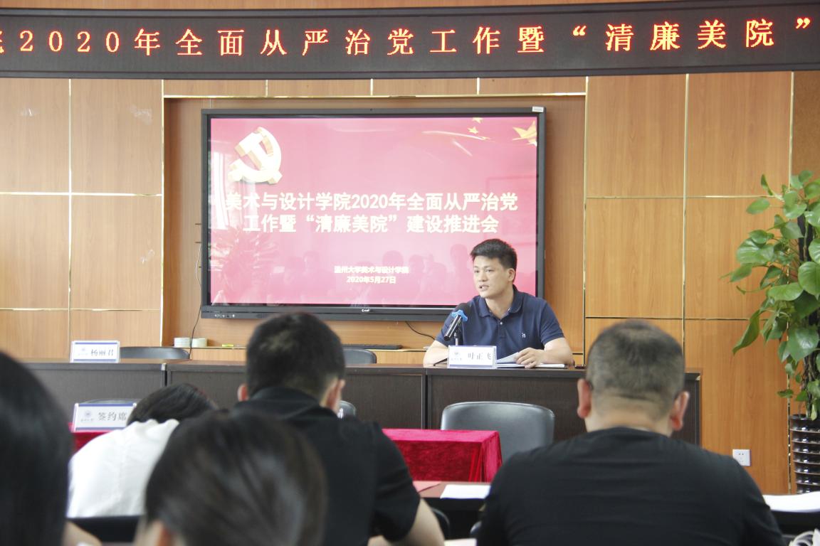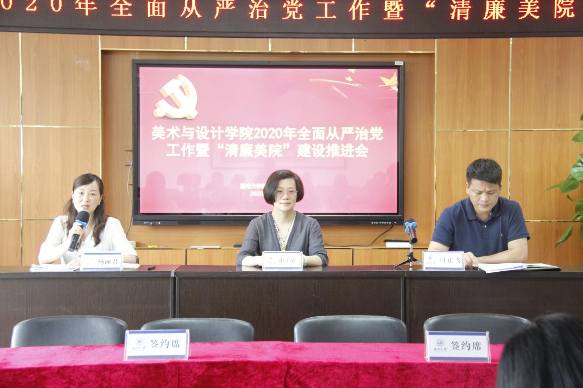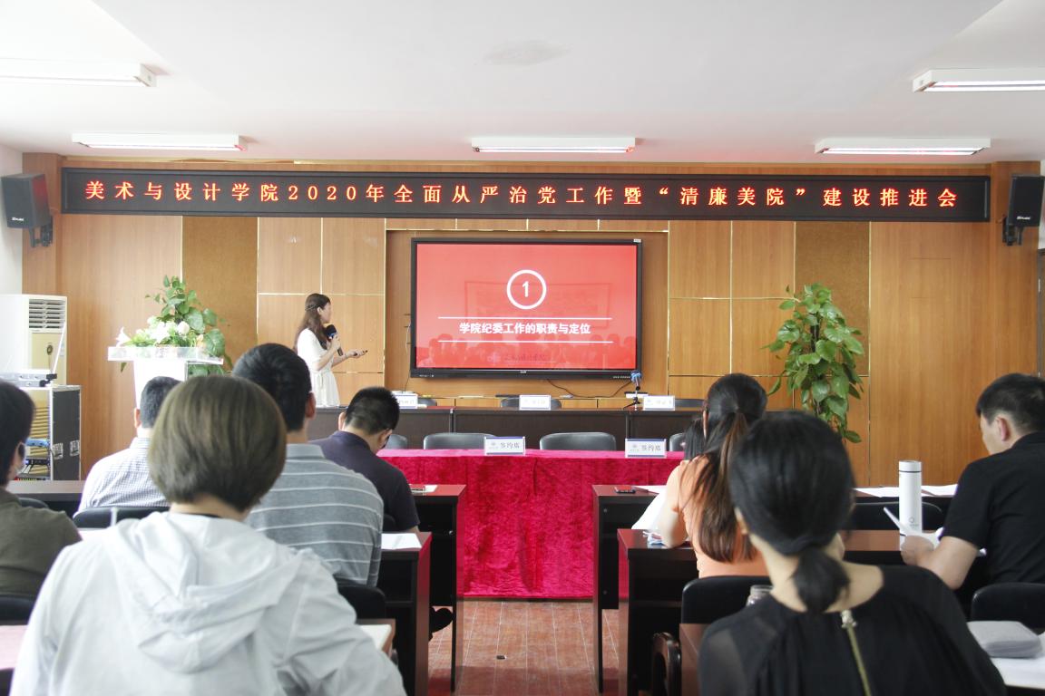 5月27日下午,皇冠博彩 在美术楼2B 4001召开2020年全面从严治党工作暨“清廉美院”建设推进会,学院全体班子成员、学院各二级单位负责人、学院全体纪委成员参加会议,会议由学院党委副书记、纪委书记杨丽君主持。