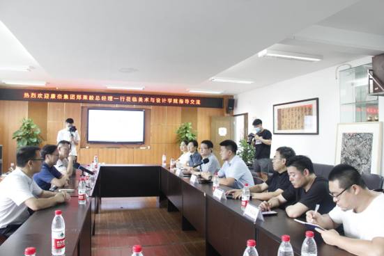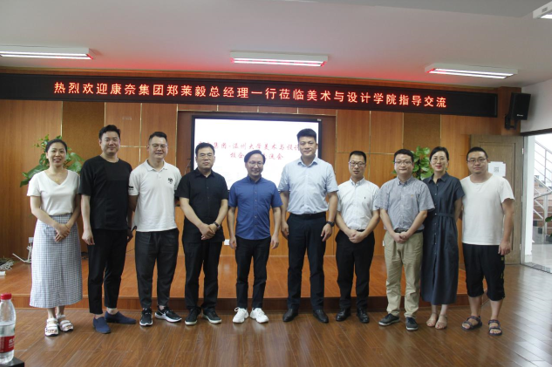 7月4日下午,康奈集团总经理郑莱毅、副总经理吴圣能及集团党委书记蔡发荣一行来皇冠博彩 交流座谈,学院党委书记叶正飞、副院长顾任飞、设计学学科带头人李运河及专业教师出席座谈会。