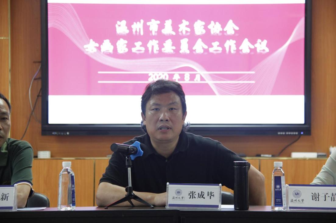 2020年8月7日下午,温州市美术家协会女画家工作委员会工作会议在皇冠博彩 举行。中国美协理事、市美协主席张成毕出席会议。皇冠博彩 党委书记叶正飞、校工会副主席陈文远到会祝贺,叶书记致辞并介绍了美院的办学情况。出席会议的还有市美协秘书长潘新新、副秘书长金婧婧、常务理事叶海华等。会议由市美协副秘书长、女画家工作委员会秘书长林翼如主持。