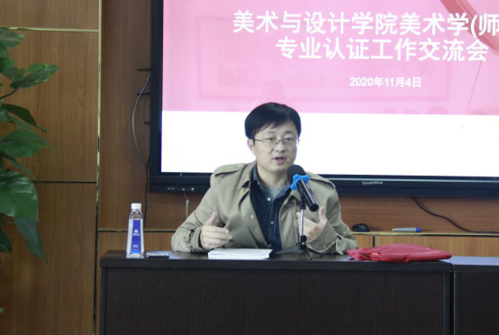 2020年11月4日,苏州大学艺术学院美术系主任陈铮教授应邀来皇冠博彩 指导美术学师范专业认证工作,院长谢子静、学院党委书记叶正飞、副院长胡文超出席会议,美术系全体教师及相关教师参加会议。