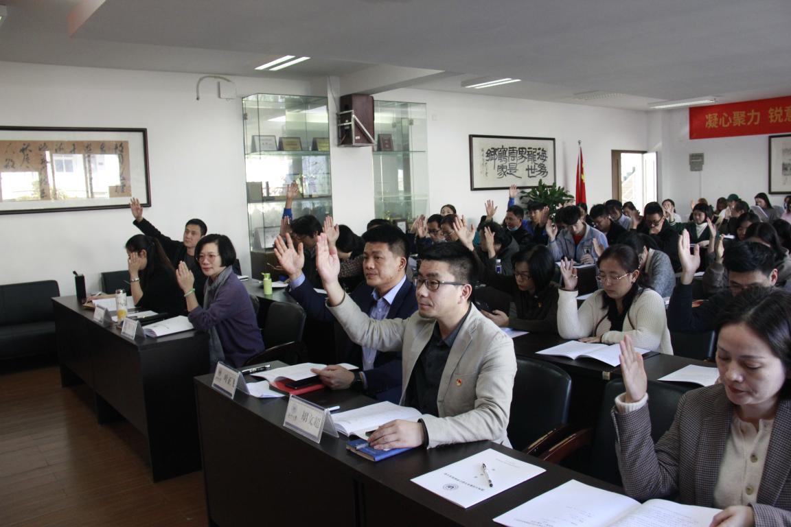 开幕式结束后,“两委”换届选举正式举行,大会以举手表决的形式,全票审议通过了学院党委、纪委工作报告(书面)和学院党费收缴、使用、管理情况的报告(书面),并最终差额选举产生了新一届党委委员和纪委委员。