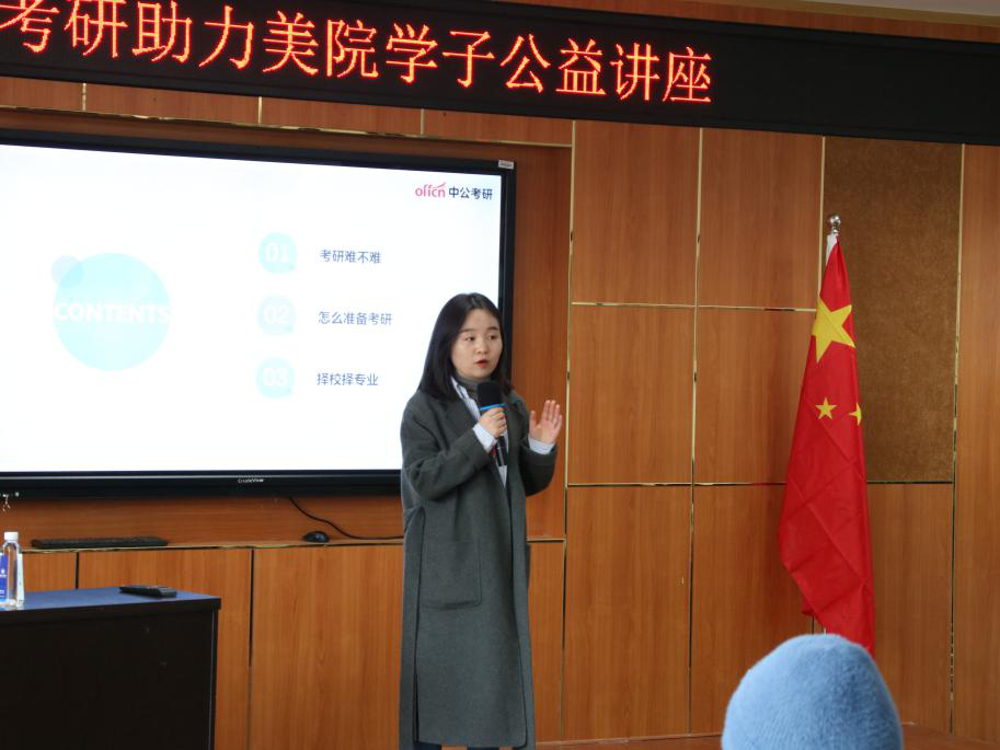 12月9日下午两点三十分许,“中公艺术考研”在皇冠博彩 举办针对2022年考研的备考指导公益讲座“艺术考研必须知道的事”。本次讲座的主要目的是给想要考研的同学答疑解惑,由中公艺术考研张文岐老师主讲。