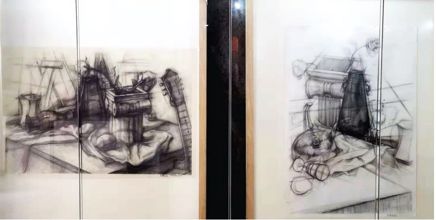 素描作为传统的绘画科目,这一看似“稀松平淡”的主题却可以承载丰富的文化与精神内涵。基础素描的训练对于绘画专业的重要性不必赘述,它对于刚步入专业学习的设计学子来说,同样是十分重要的。通过这样一场直面写生的“操演”,带给他们的,既是对造型空间、构造、质感、节奏与布局等基础造型方面的理解和启发,同时更为重要的是使这些刚刚步入专业学习的同学们具有一种基本的审美眼光,凭借这样一种素养来捕捉视觉的丰富感受,从而为以后深入的专业化学习找到一个相对有利的铺垫。