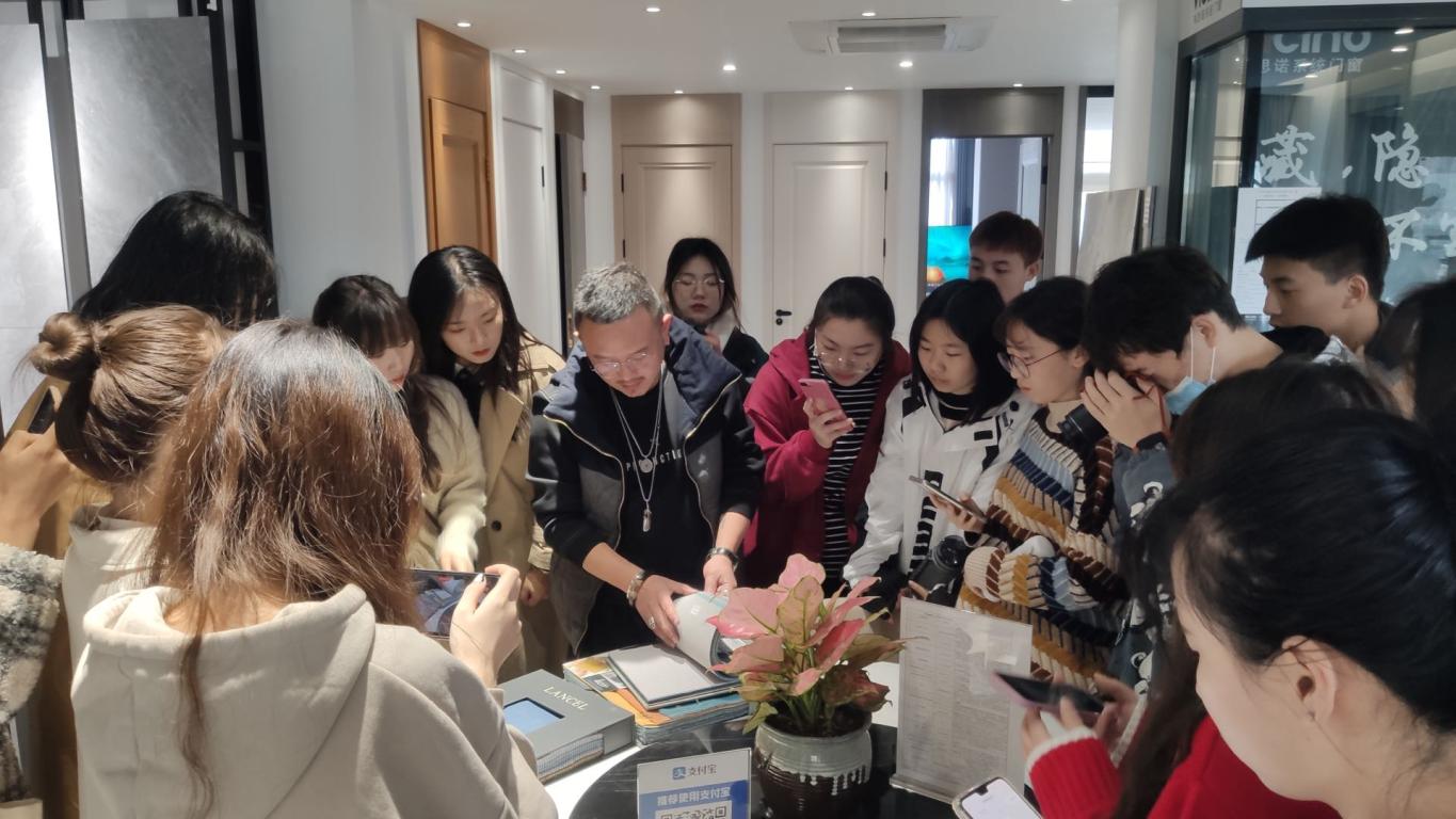 2021年3月12日,胡文超老师带领20级环境设计2班的同学前往温州共鑫装饰工程公司和圣都家居装饰有限公司温州分公司两个公司参观见习。 温州共鑫装饰工程有限公司是一家集设计,施工,建材于一体的大型综合性装饰企业。自成立以来,承接各类家装,餐饮娱乐,写字楼,商业空间等设计施工项目,取得了良好的社会口碑。而圣都家装是一个连锁的家装公司,有很多分公司分布在全国各地。 同学们首先参观了共鑫装饰工程公司,公司的经理和设计师带同学们参观了样板间以及种类繁多的样品。在这个公司同学们主要对室内硬装有了一定的了解,对于房屋内地砖,大理石,以及房屋内的水管的分布及安装,林设计师向同学们介绍了墙面固化还有房屋的顶部设计青钢龙骨吊顶等等。设计师还告诉同学们在室内设计这个行业中,越老越吃香,越有经验越吃香。 下一个参观的是本土相对来说的更加知名的圣都装饰有限公司温州分公司,公司的经理和董正大设计师热情地向同学们介绍了圣都公司的历史、办公区以及一些精装修的案例。该公司着重介绍软装,老师提到,软装现在是行业的一种趋势,且作为女孩子来讲,相比于男生同学们在软装方面更有优势。 最后同学们还学习了更多与客户打交道方面的准则,比如公司总结的客户十怕:怕甲醛超标,怕工程质量不好,怕售后无保障等等,以及总结出来他们的圣都十诺,以上几怕都有圣都来承担与保障。 通过这次的见习,让同学们对专业知识有了进一步的了解和感受,这次实践课带给同学们的不仅仅是专业上的知识,更多的是同学们对于这个行业的认识和思考。