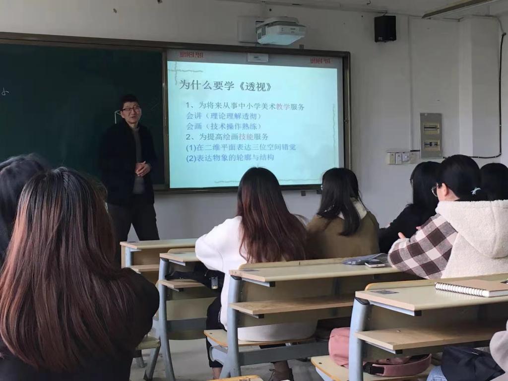 校领导潘玉驹,部门领导廖志勇、张希均、李密,校督导贾守菊随机听取了20美术学(师范)班,吴建南老师为讲授的《艺用透视》课程,感受到了老师认真的教学态度、饱满的工作热情和良好的教学水平。