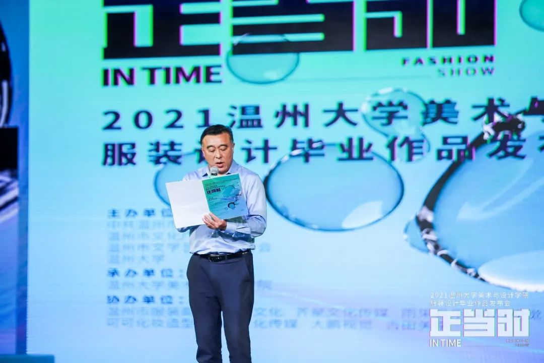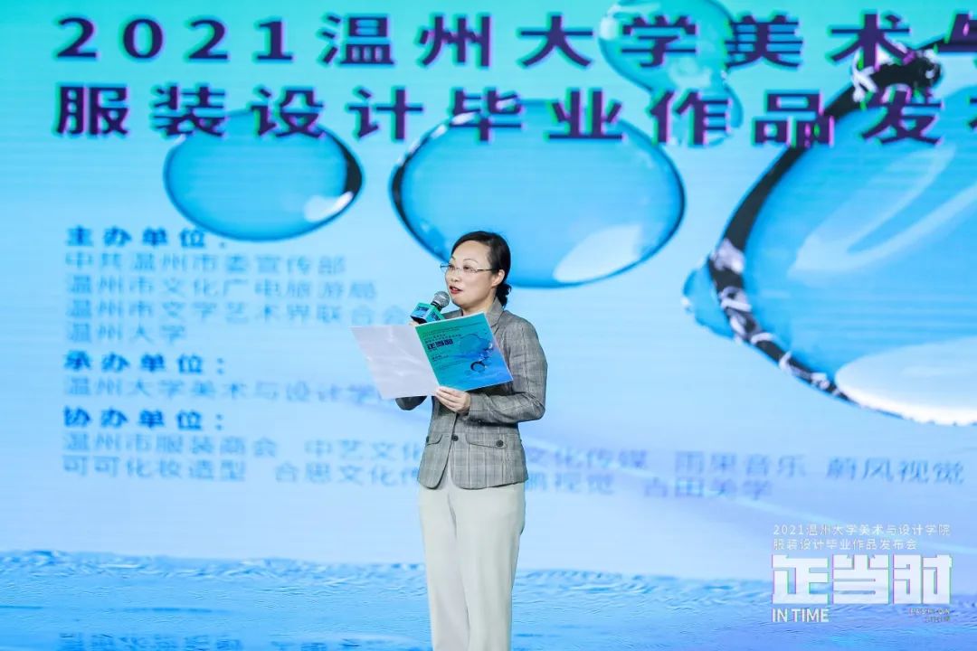 随后,温州市委宣传部副部长叶艳致辞。叶艳指出,温州大学一年一度的服装毕业作品发布会的隆重举行,是校企联动、服务地方的重要成果结晶,希望温大继续承担繁荣社会主义文化艺术的光荣使命和历史责任,深入推进教育教学改革,不断提升高等艺术人才的培养质量。
