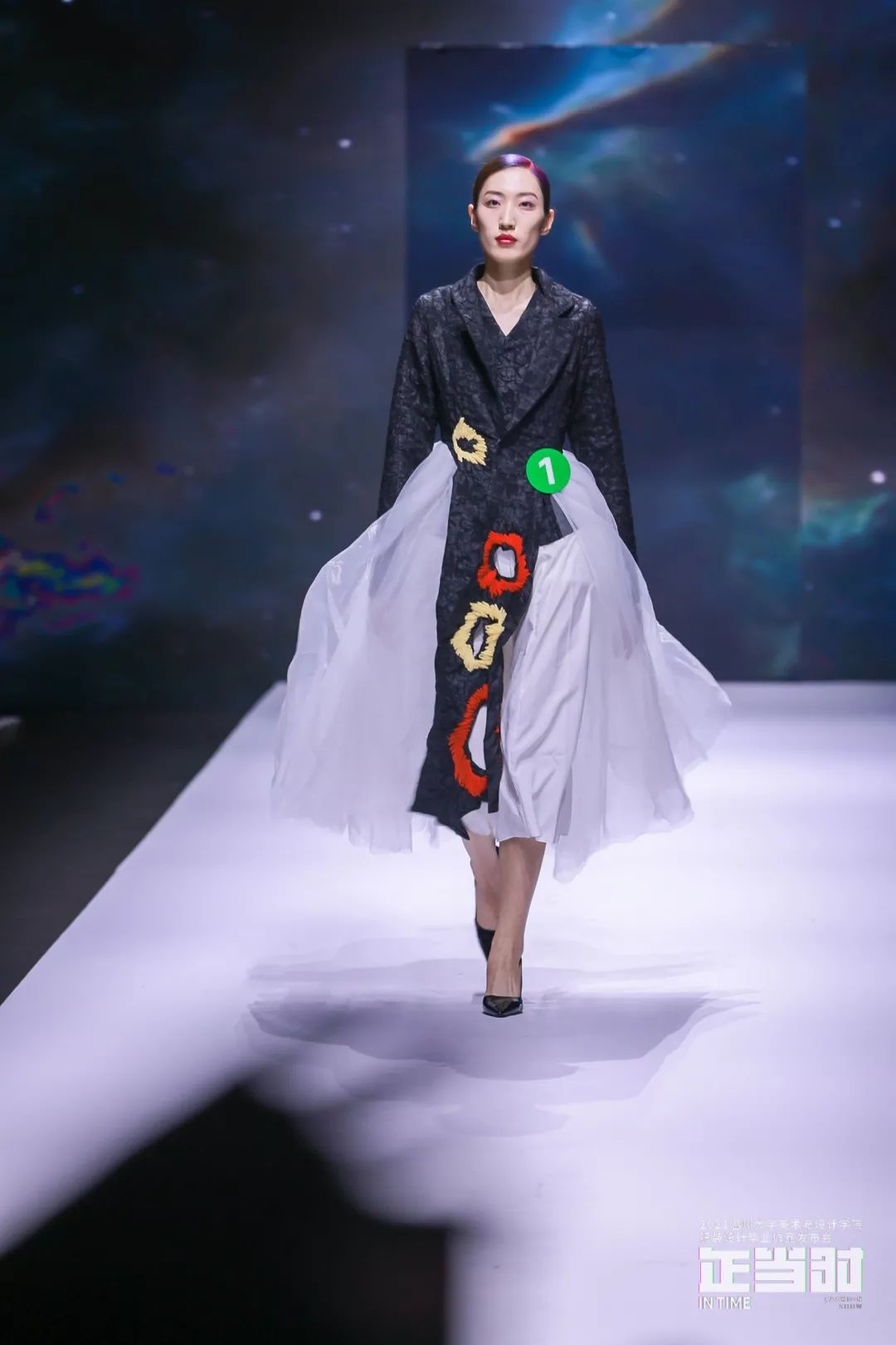 4月30日晚上,2021届温州大学服装设计毕业作品发布会在温州大学南校区体育馆三楼隆重举行。来自服装与服饰设计专业的28名年轻设计师以108套精心创设的作品,展示他们在服装艺术道路上四年孜孜以求的成果,表达他们对于服饰的独特见解和对时尚的钟情热爱,并在T台上决出最后的桂冠。